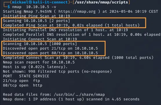 Dès lors, pas de surprise, Nmap affichera une sortie standard comme à son habitude dans notre terminal, mais également dans le fichier indiqué.