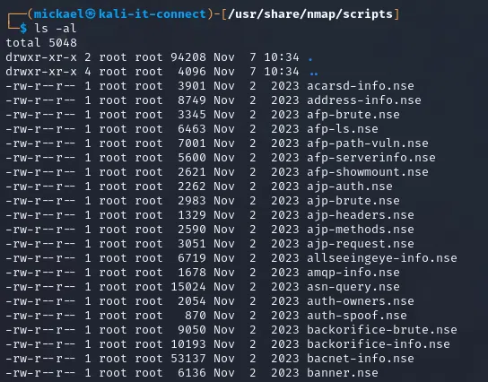 La méthode la plus efficace selon moi reste donc les commandes classiques Linux dans le répertoire “/usr/share/nmap/scripts/” :
