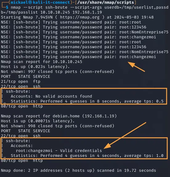 # Exécution d’un brutefore SSH via le scan réseau Nmap