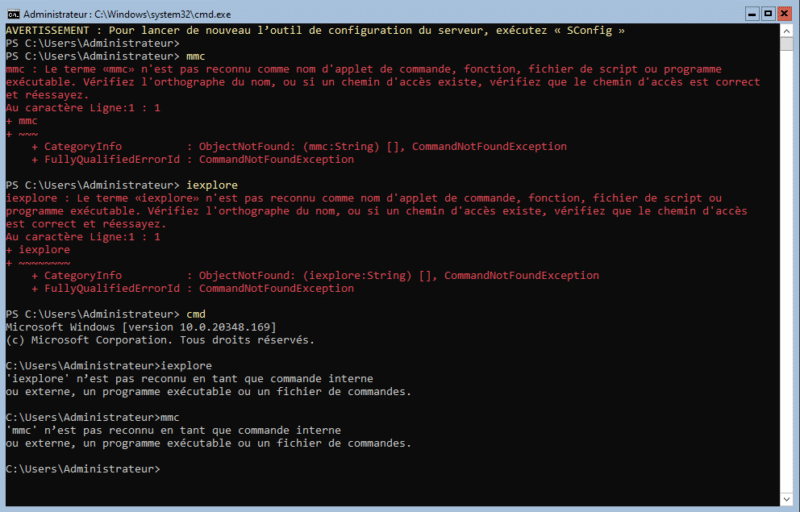 En effet, d’une part il n’y a pas d’interface graphique, mais cela implique également la suppression de tous les outils et logiciels installés de base et qui s’appuie sur cette interface. À titre d’exemple, on pourrait citer : Internet Explorer, la console MMC, l’Observateur d’événement ou encore l’Explorateur.
