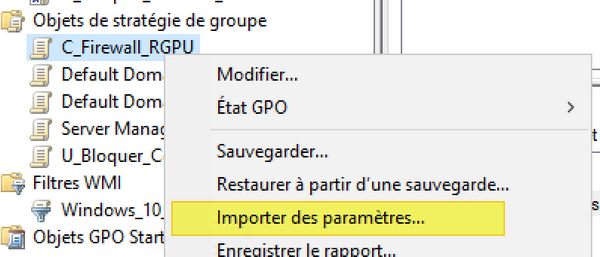 2 - Effectuer un clic droit sur la GPO cible, et cliquer sur "Importer des paramètres"