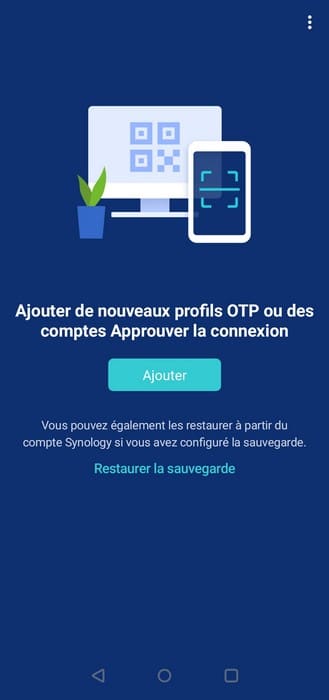 Pour vous permettre de voir à quoi ressemble l'application Synology, je l'ai installée sur mon mobile. Concrètement, son utilisation est simple puisqu'il suffit de cliquer sur "Ajouter" pour créer un nouveau profil puis de cliquer sur "Autoriser l'accès à la caméra" afin de pouvoir scanner le code QR qui s'affiche sur DSM.