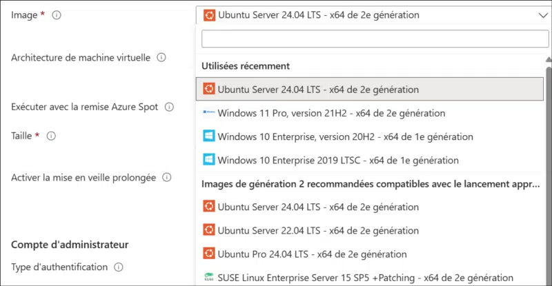 publisher / offer / sku / version. Il est conseillé de valider la disponibilité de l’image avec l’outil Azure CLI comme nous l'avons montré plus haut. - L’authentification par mot de passe est désactivée pour renforcer la sécurité. Nous utilisons une clé SSH publique déclarée dans nos variables pour se connecter.