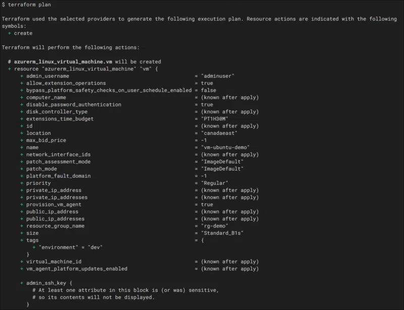 Avant de lancer le déploiement réel (terraform apply), il est toujours préférable de générer un plan d'exécution avec la commande terraform plan pour confirmer les actions qui seront exécutées par Terraform