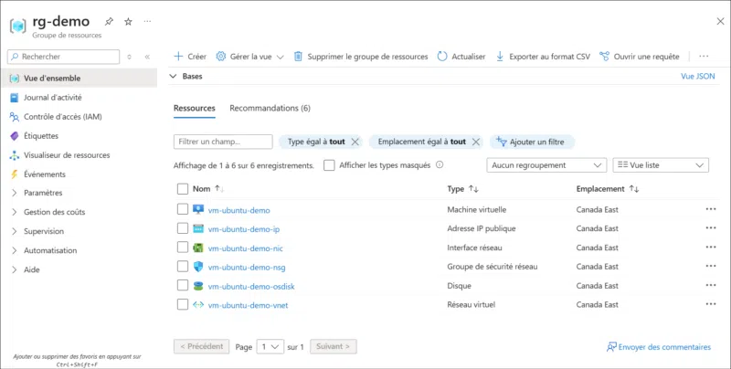 Si vous le souhaitez, vous pouvez aller voir en mode graphique les composants que vous avez déployés dans l'interface web d'Azure.