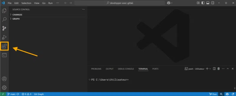 1) Ouvrez Visual Studio Code et cliquez sur l'icône des extensions dans la barre latérale.