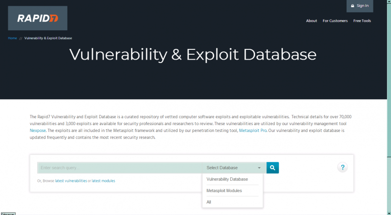 En effet, avant d’exploiter une quelconque faille de sécurité, il faut bien évidemment effectuer un scan de vulnérabilités. Une fois ce précieux rapport entre nos mains, on peut alors chercher à en exploiter un des éléments. Pour cela rien de mieux que d’interroger la base mise à disposition sur le site Rapid7 ci-dessous :