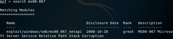 msf > use windows/smb/ms08_067_netapi
