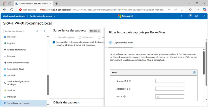 Personnellement, je préfère utiliser PktMon en ligne de commande sur un serveur puis exporter le fichier de capture vers une autre machine où l’analyse est effectuée. Cette extension dans WAC est encore en « aperçu » donc elle devrait évoluer et s’améliorer par la suite.