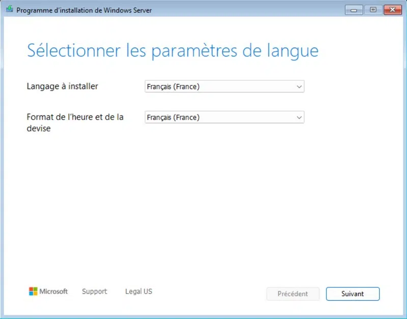 La première étape consiste à choisir la langue et le format de l’heure et de la date.