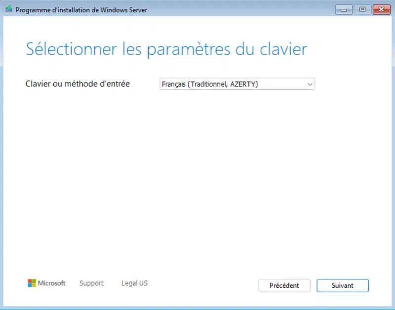 La seconde étape consiste à sélectionner la disposition du clavier.
