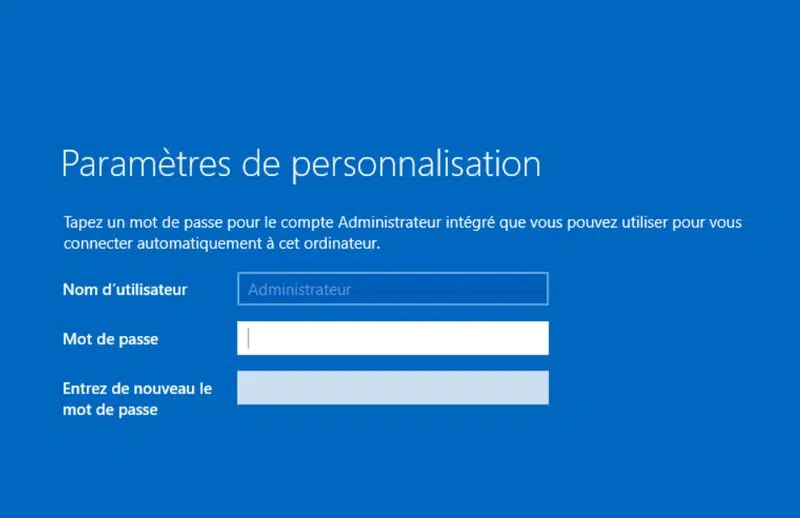 Quand la machine aura redémarré, vous serez invité à définir un mot de passe pour le compte « Administrateur ». Il s’agit du compte d’administration disposant de privilèges élevés sur la machine. Il convient de définir un mot de passe robuste.