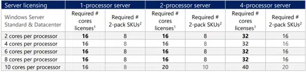 Pour les éditions « Standard » et « Datacenter », la licence doit couvrir à minima 16 cœurs de processeur, même si votre processeur dispose d’un nombre de cœurs inférieur.