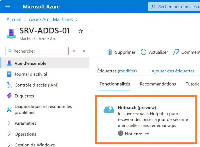 Le point négatif associé à cette nouveauté pourtant très intéressante sur le papier, c’est l’obligation d’inscrire le serveur auprès du service Azure Arc. Cela permet de faire remonter le serveur local, installé sur votre infrastructure on-premise, dans Azure, et ainsi activer la fonction de Hotpatch.