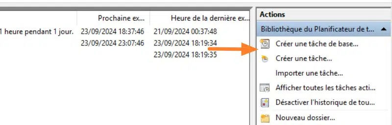 Si vous souhaitez conserver ce modèle de tâche planifiée ou créer cette tâche planifiée sur votre serveur, utilisez le bouton « Exporter ». Ceci vous permettra d’exporter la définition de la tâche dans un fichier au format XML, et vous pourrez l’importer sur une autre machine via le bouton « Importer une tâche » situé dans le menu latéral de droite de la console.