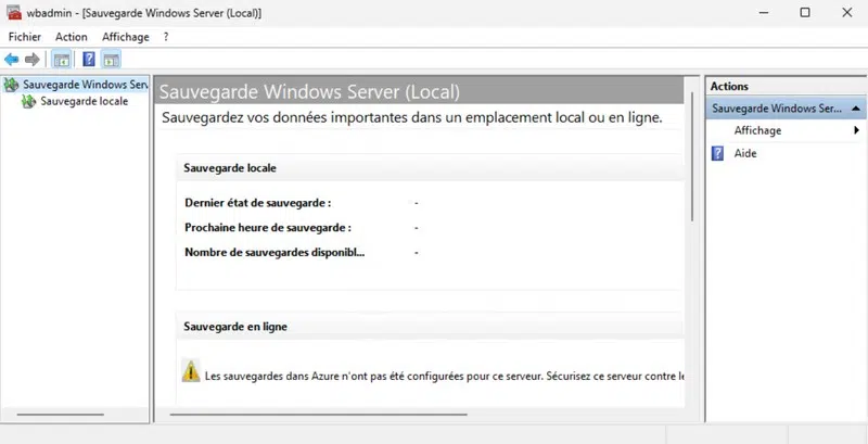 Remarque : vous pouvez aussi utiliser l’option « Sauvegarde unique » accessible dans la console « Sauvegarde Windows Server ».