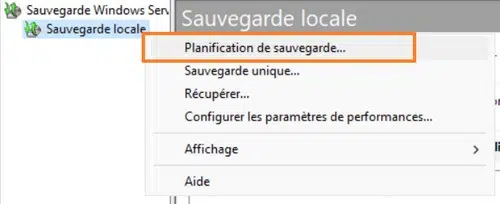Effectuez un clic droit sur « Sauvegarde locale » et cliquez sur « Planification de sauvegarde ».
