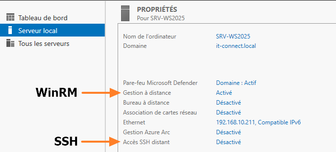 La prise en charge de SSH sur Windows est assez récente. Jusqu’ici, pour se connecter à distance en ligne de commande à un serveur, il était nécessaire d’utiliser le protocole WinRM. Il reste toujours pris en charge et il est activé par défaut, contrairement à SSH.