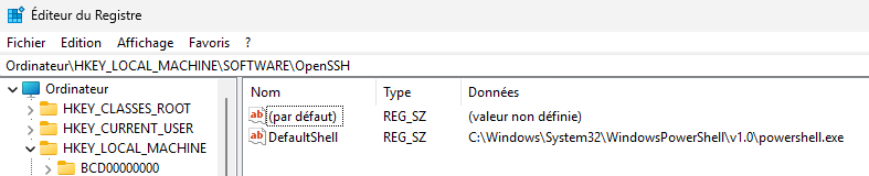 En modifiant la configuration d’OpenSSH à partir du Registre Windows, vous pouvez définir PowerShell comme shell par défaut. Cela signifie que lors d’une connexion au serveur, vous aurez directement accès à la console PowerShell.