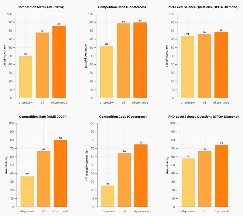 Le modèle "o1" est dès à présent disponible pour les utilisateurs de ChatGPT Plus (abonnement à 20 dollars par mois). En complément, et comme le montrent les graphes ci-dessus, OpenAI fait référence à un modèle nommé "o1 pro mode".