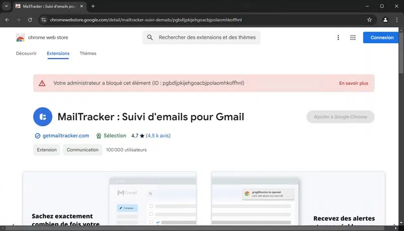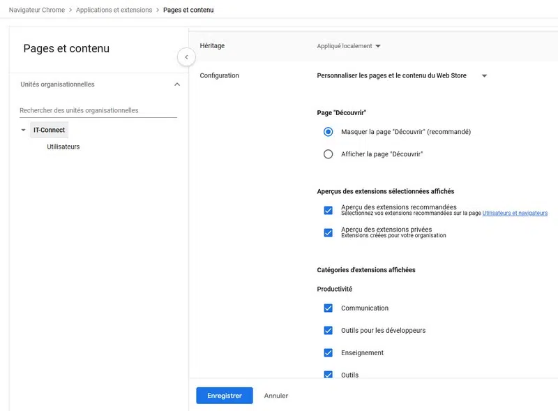 Pour que l'utilisateur visualise votre Chrome Web Store d'entreprise, il doit être connecté avec son compte Google d'entreprise dans le navigateur. Sinon, à l'heure actuelle, cela ne fonctionne pas ! Par contre, les restrictions évoquées sur les extensions sont applicables, peu importe si l'utilisateur est connecté ou non.