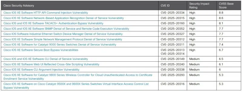 Les nouvelles mises à jour pour Cisco IOS et IOS XE corrigent également 12 autres failles de sécurité ! Parmi elles, deux vulnérabilités pour lesquelles un code d'exploitation (PoC) est déjà disponible :