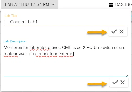 Cliquez sur le nom du LAB, puis ajoutez un nom au laboratoire ainsi qu’une description.