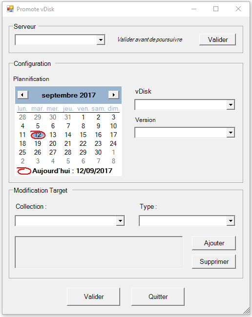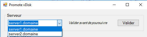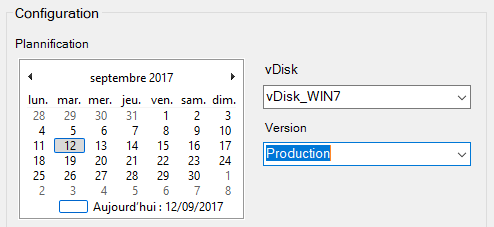 Après quelques secondes il suffira de choisir le nom du vDisk à promouvoir ainsi que la version, mais également la date de la planification :