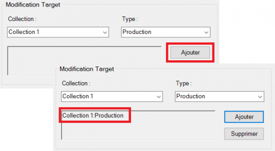 À présent il est possible de modifier le type des targets des collections en sélectionnant la collection, le type et en validant avec le bouton "Ajouter" :