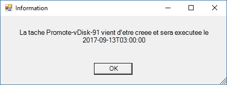 Pour répondre et pallier la problématique, j’ai créé une IHM permettant de planifier à 3H du matin la promotion d’un vDisk.