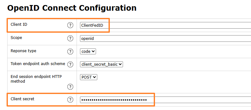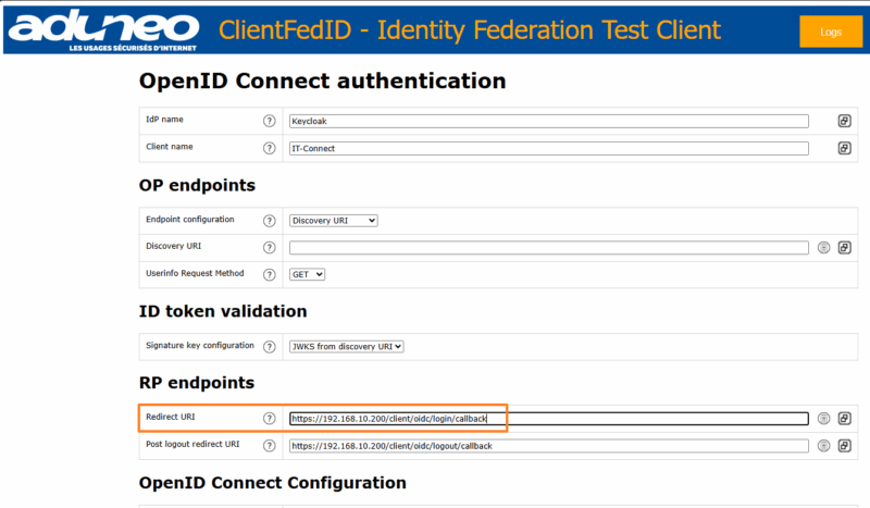 - Client ID : indiquez la même valeur que dans Keycloak, à savoir "ClientFedID" pour ma part.