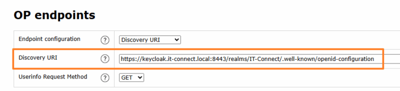 Au sein de la section "OP endpoints", collez l'URL de découverte au sein du champ "Discovery URI".
