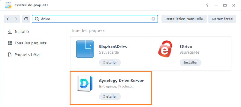 Commençons par installer le paquet "Synology Drive Server" à partir du Centre de paquets et de l'interface DSM. Il s'agit de Synology Drive Server 3.1.