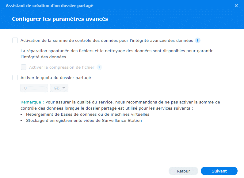 Passez cette étape, en activant ou non ces options comme la définition d'un quota.