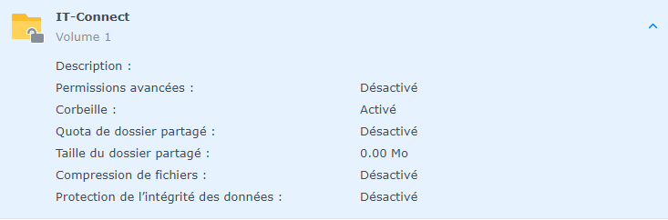 Cliquez sur "Appliquer". Le dossier partagé est créé et visible depuis l'interface DSM.