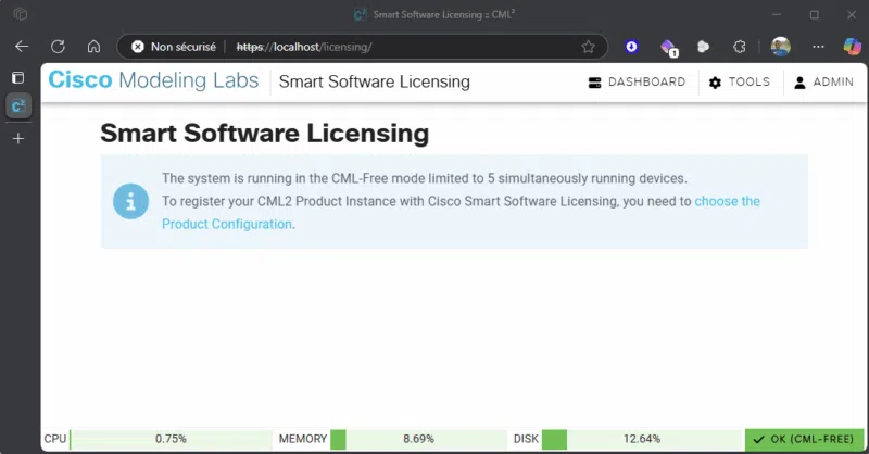 Pour Cisco Modeling Labs, je vous conseille de lire l’article sur l’introduction à CML pour découvrir comment l’installer et le configurer.