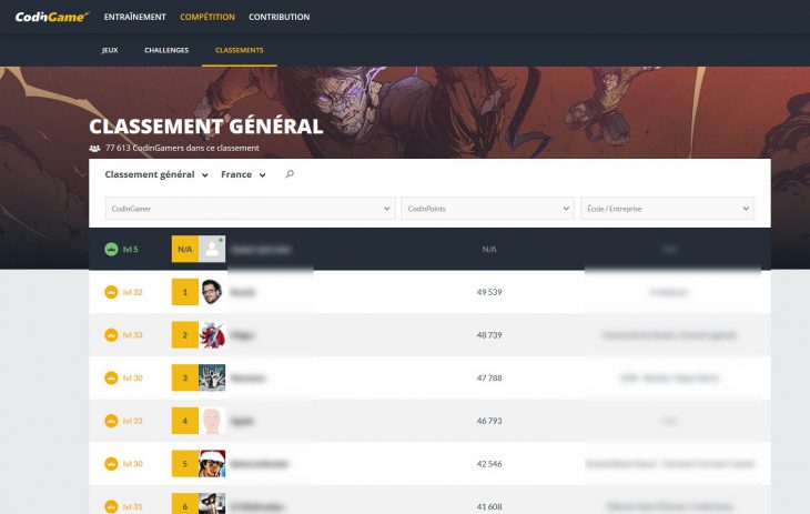 Il existe également une partie compétition, qui permet d'avoir un classement des meilleurs développeurs, de remporter des points et des succès au sein de la plateforme :