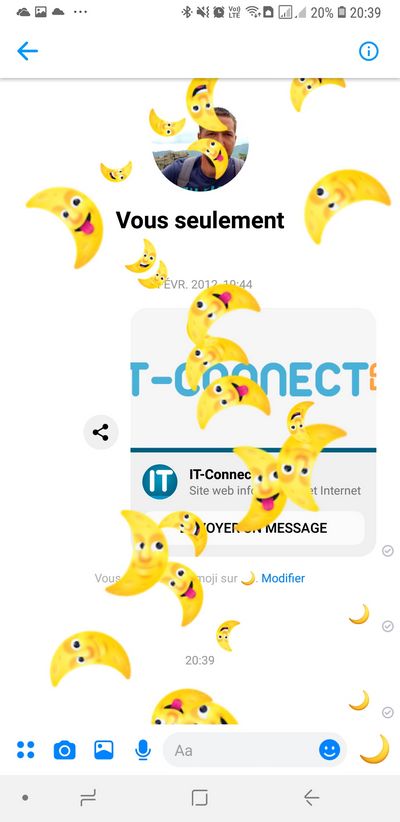 Ouvrez Messenger et l'une de vos conversations, vous pouvez même ouvrir une conversation avec vous même si vous le souhaitez. Ensuite, envoyez dans la conversation l'emoji "croissant de lune".
