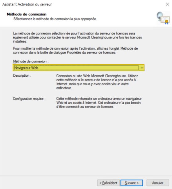 Cette étape est indispensable pour le bon fonctionnement du serveur mais également pour être en accord avec la politique d'utilisation de Microsoft, qui nécessite l'utilisation de licences d'accès (CAL) pour le service RDS.