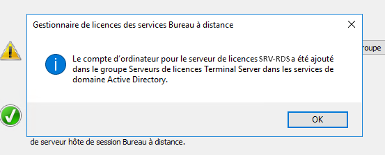 Après avoir rentré l'identifiant sur l'assistant, si tout est bon, vos CAL RDS vont apparaître au sein du gestionnaire de licence RDS :