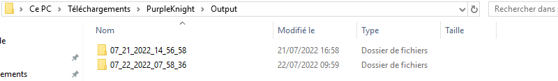 Enfin, sachez que vous pouvez retrouver l'ensemble de vos rapports d'audit dans le répertoire "Output" de Purple Knight :