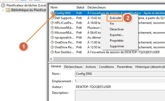 On peut bien évidemment tester la tâche pour être certains qu’elle s’exécutera automatiquement au moment planifié en allant dans la bibliothèque du planificateur de tâches.