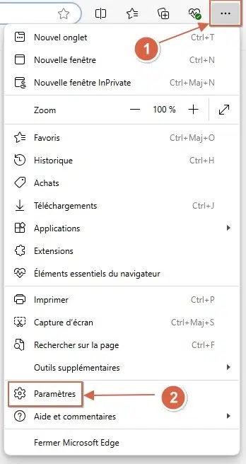 On lance le navigateur et on se rend dans les paramètres en haut à droite.