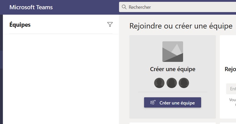 Pour rappel, au sein du client Teams, la création d'une équipe s'effectue en cliquant sur le bouton "Créer une équipe".