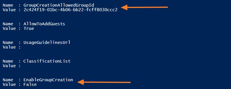 $settingsObjectID = (Get-AzureADDirectorySetting | Where-object -Property Displayname -Value "Group.Unified" -EQ).id