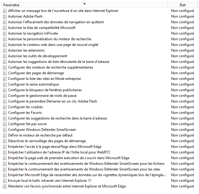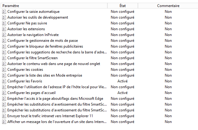Avec l'arrivée de Windows 10 Creator's Update, il y a de nouveaux paramètres pour Edge au sein des GPO, voici la nouvelle liste :