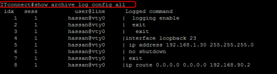 ITconnect(config)#archive ITconnect(config-archive)#log config ITconnect(config-archive-log-cfg)#logging enable