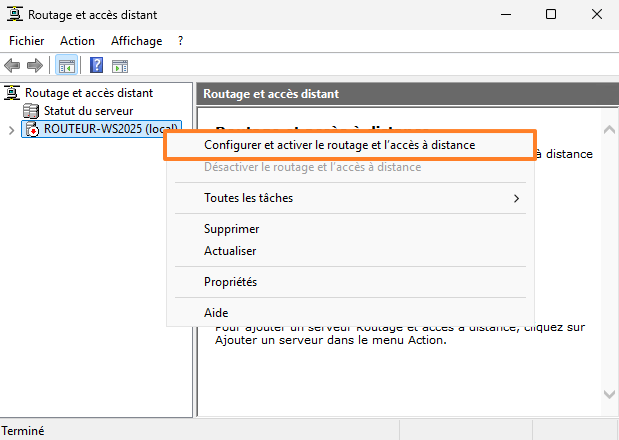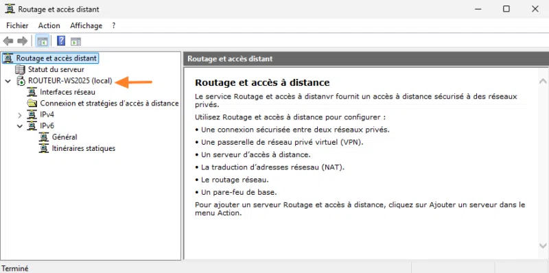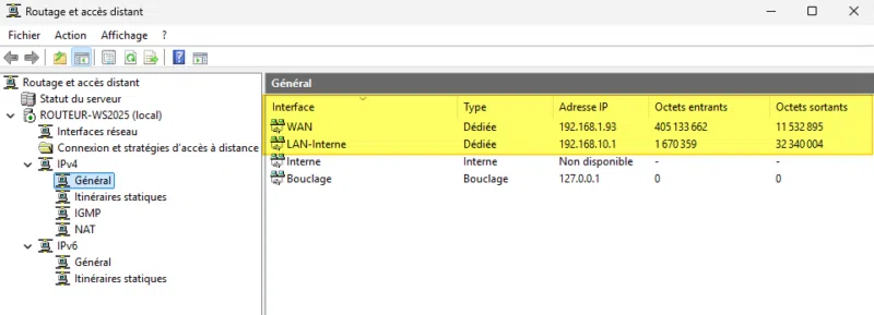 La configuration initiale du routeur sous Windows Server est terminée ! Dans la suite de cet article, nous verrons quelques options de configuration supplémentaires.