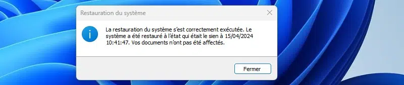 J'insiste bien sur le fait qu'un point de restauration ne protège pas vos données et n'altère pas vos données lors de la restauration.