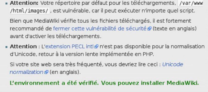 L’installation de MediaWiki nécessite quelques prérequis supplémentaires pour être utilisé de façon optimum. Il faut notamment ajouter quelques modules PHP supplémentaires :